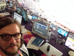 Auf der Pressetribüne bei der Leichtathletik-WM in Athen 1997