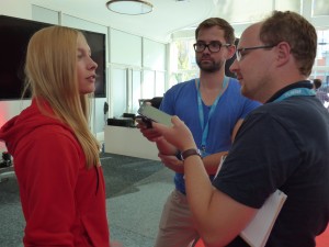Robert Harting gibt Ralph Scholt von der ARD gleich danach ein Interview: