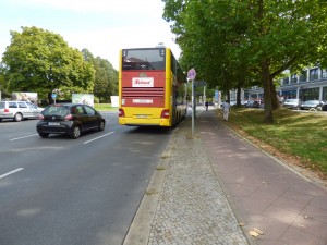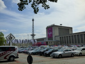 Eigentlich wollte ich wieder in der Reichsstraße parken (wie am Freitag), aber dann nahm ich doch den kürzeren Weg, rollte über die A 10 , dann Richtung Spandau, vorbei an Elstal (dort, wo vor einiger Zeit auch die Leichtathletik mal stattfand und wo 1936 die Olympioniken kampierten). Dann war ich schon ganz nahe am Olympiastadion, bog rechts ab in eine beschauliche Wohngegend und fand ein Plätzchen für mein Auto. Damit ich es spät am Abend wiederfinden konnte, fotografierte ich zunächst die wichtigen Straßenschilder: