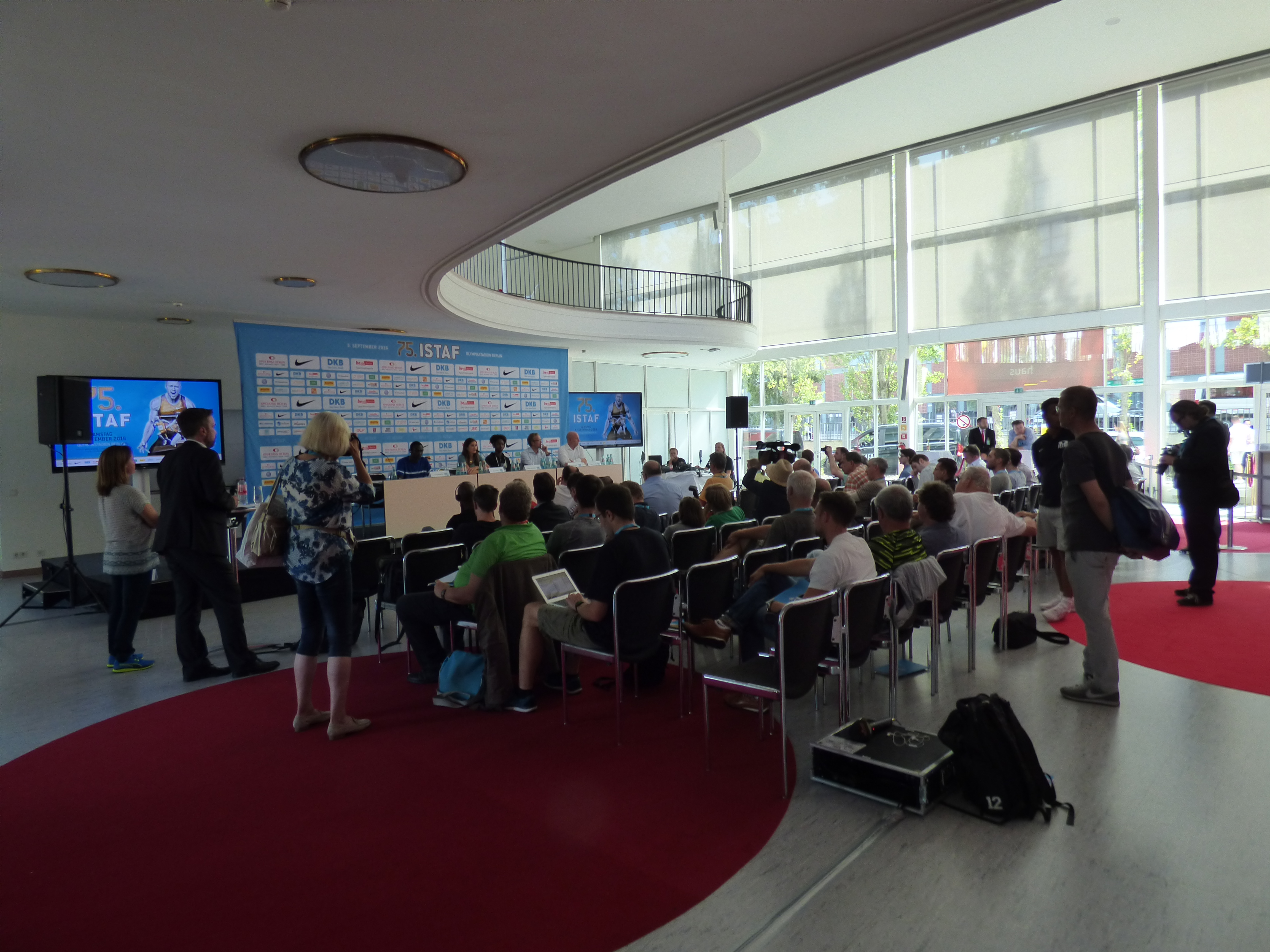 Und dann die Show der Worte im Presseraum. So wie sich beide, Thomas Röhler und Johannes Vetter, da präsentierten, war beispielhaft. Alle Journalisten waren zutiefst beeindruckt, wie die beiden alle Facetten des Speerwurfs darlegten, das individuelle Training (alle gemeinsam trainieren, das würde uns nichts bringen) die Offenheit untereinander in allen Trainingsfragen (es gibt keine Geheimnisse, auch unsere Trainer tauschen sich aus), den menschlichen Zusammenhalt (wir können alle gut miteinander, obwohl wir Konkurrenten sind) und das Selbstbewußtsein (wir wissen, wie stark der deutsche Männerspeerwurf gegenwärtig ist). Ich erinnerte mich gut daran, wie an gleicher Stelle, in diesem kleinen, eigentlich dem großen Olympiastadion nicht würdigen Presse-Räumchen, vor einigen Jahre zwei deutsche Weitspringer, Christian Reif und Sebastian Bayer, eine Lanze für ihre Disziplin gebrochen hatten. Und da flogen die Worte ebenso präzise, überzeugend durch den Raum. Solche Persönlichkeiten braucht die deutsche Leichtathletik!