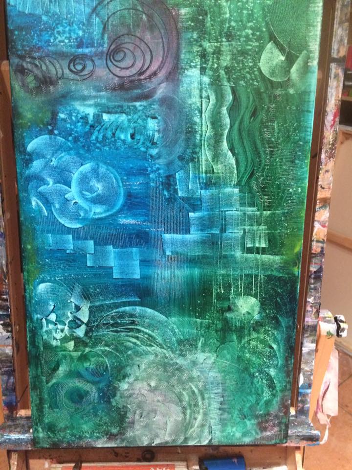 Doch wo ein Ende ist, ist auch ein Anfang. Silvie Höllstin dachte sich: Was man in einer Lehre gelernt hat, verlernt man nie. Sie wagte den Wiedereinstieg, arbeitet nun in einer Zahnarztpraxis. Und schon vorher hatte sie, die schon als Kind sehr gern gemalt hatte, ihre alte Leidenschaft wiederentdeckt. „ Ich habe einfach so für mich gemalt, auch um das Alleinsein auszuhalten“. Und als dann eine Freundin fragte, ob man ihre Bilder auch kaufen können, dachte sie nach: „ Es gibt tatsächlich Leute, denen meine Bilder gefallen.“ Ihr Selbstwertgefühl stieg, und das Malen machte mehr und mehr Spaß. Sie eignete sich verschiedene Maltechniken an, stellte Bilder in der Praxis aus und erhielt erste Aufträge. Sie gewann immer mehr Lebensmut und schreibt nun aus vollstem Herzen: „ Die Malerei ist meine tiefste Leidenschaft und ich bin am glücklichsten, wenn ich malen darf“.