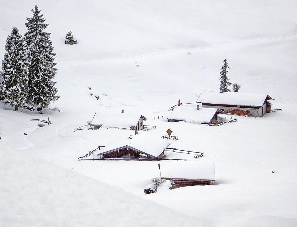 Und wer sich bisher noch nicht an Schnee satt gesehen hat, der kann das bei den folgenden Bildern, die Andreas Wiesinger einige Tage zuvor in der Nähe des Carl-von-Stahl-Hauses geschossen hat. Das Carl-von-Stahl-Haus ist eine ganzjährig betriebene Berghütte in 1.736 m Seehöhe am Torrener Joch zwischen Hagengebirge und Göllstock, direkt an der Grenze zwischen Bayern und Salzburg am Rande des Nationalpark Berchtesgaden gelegen.