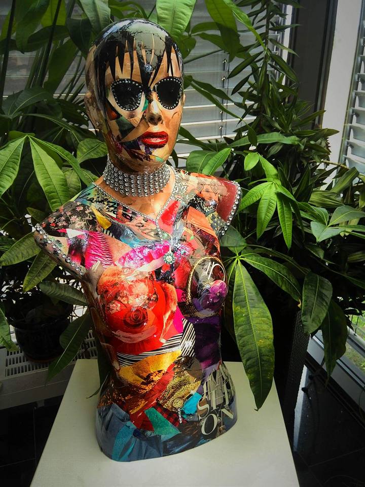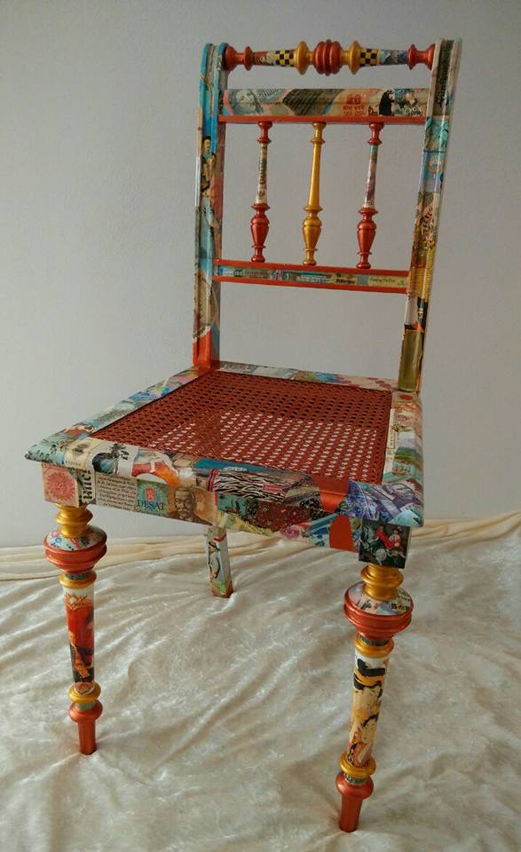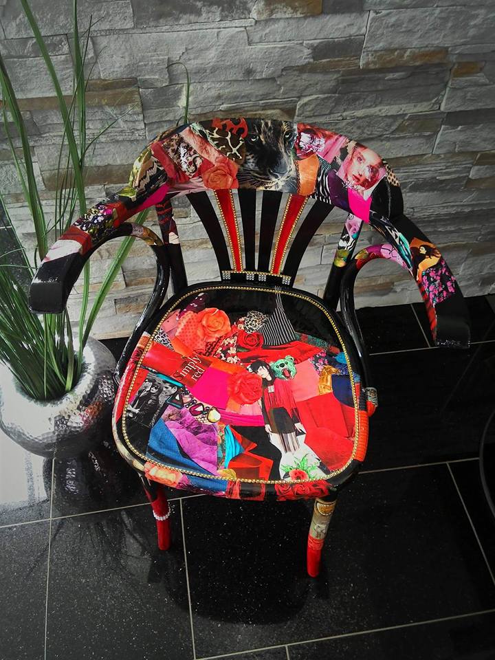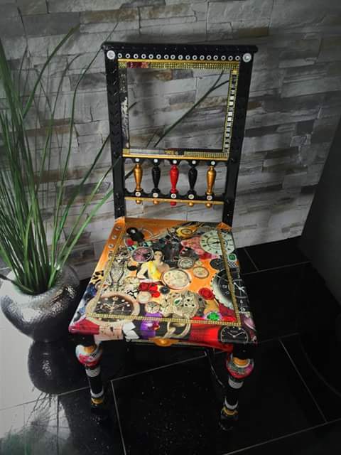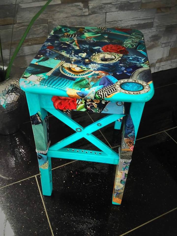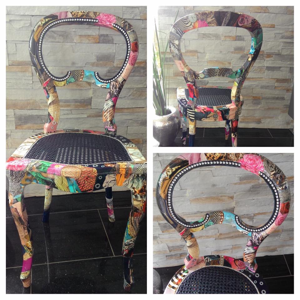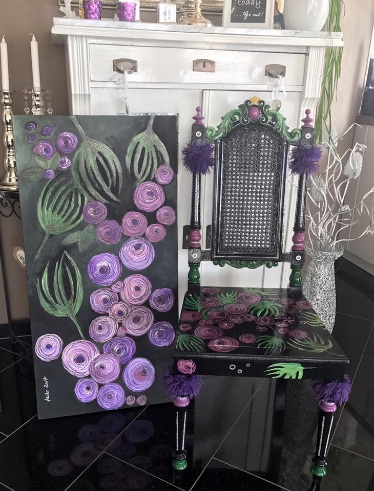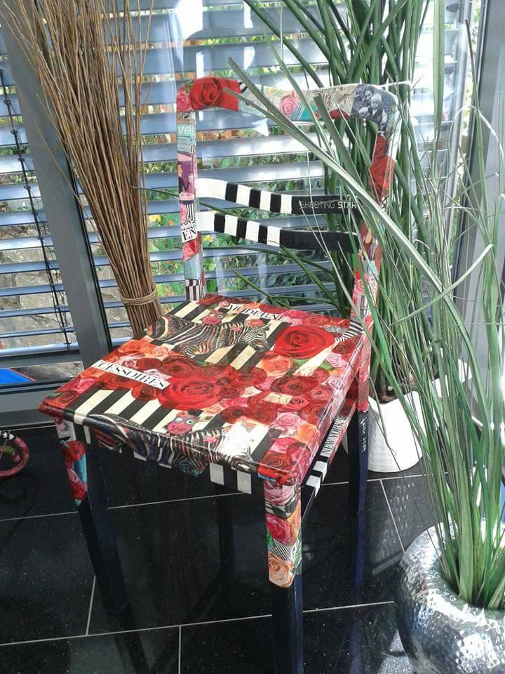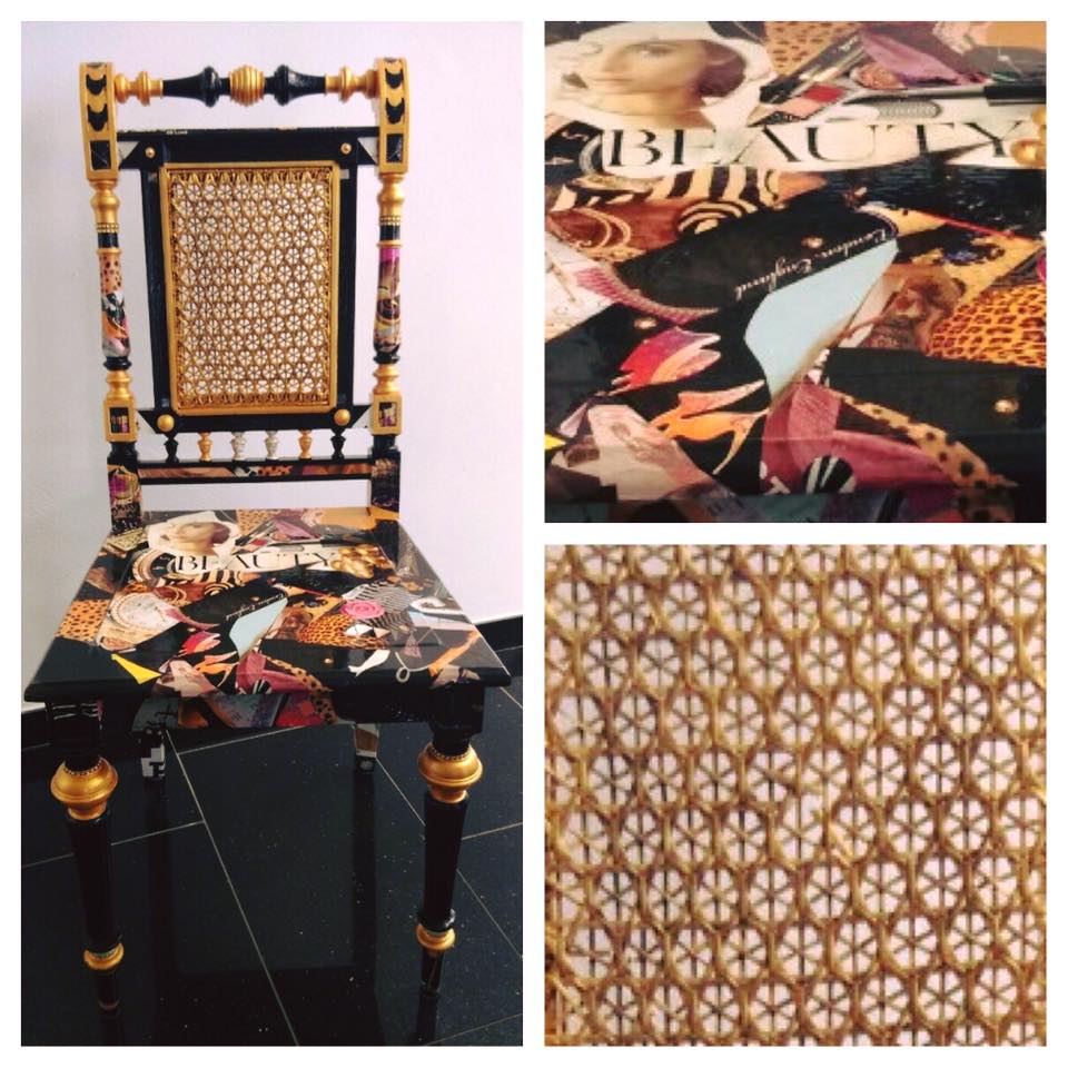 Nebenher betätigt sich Meike Kröger auch künstlerisch, wie in den beiden folgenden Bilder zu sehen ist. “ Ich drucke diese Siebdruckmuster selbst und verarbeite sie“: