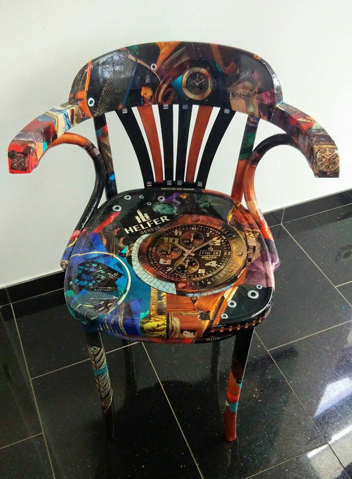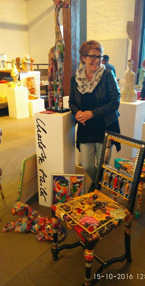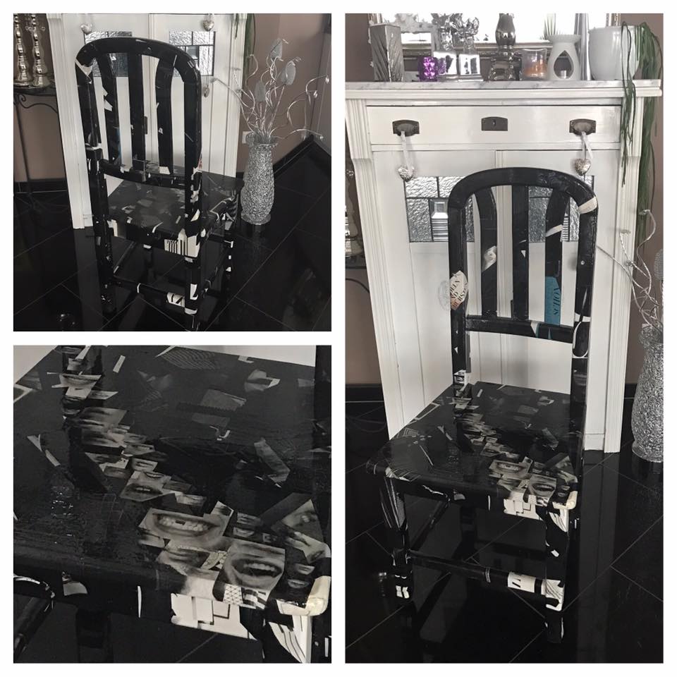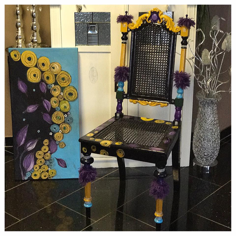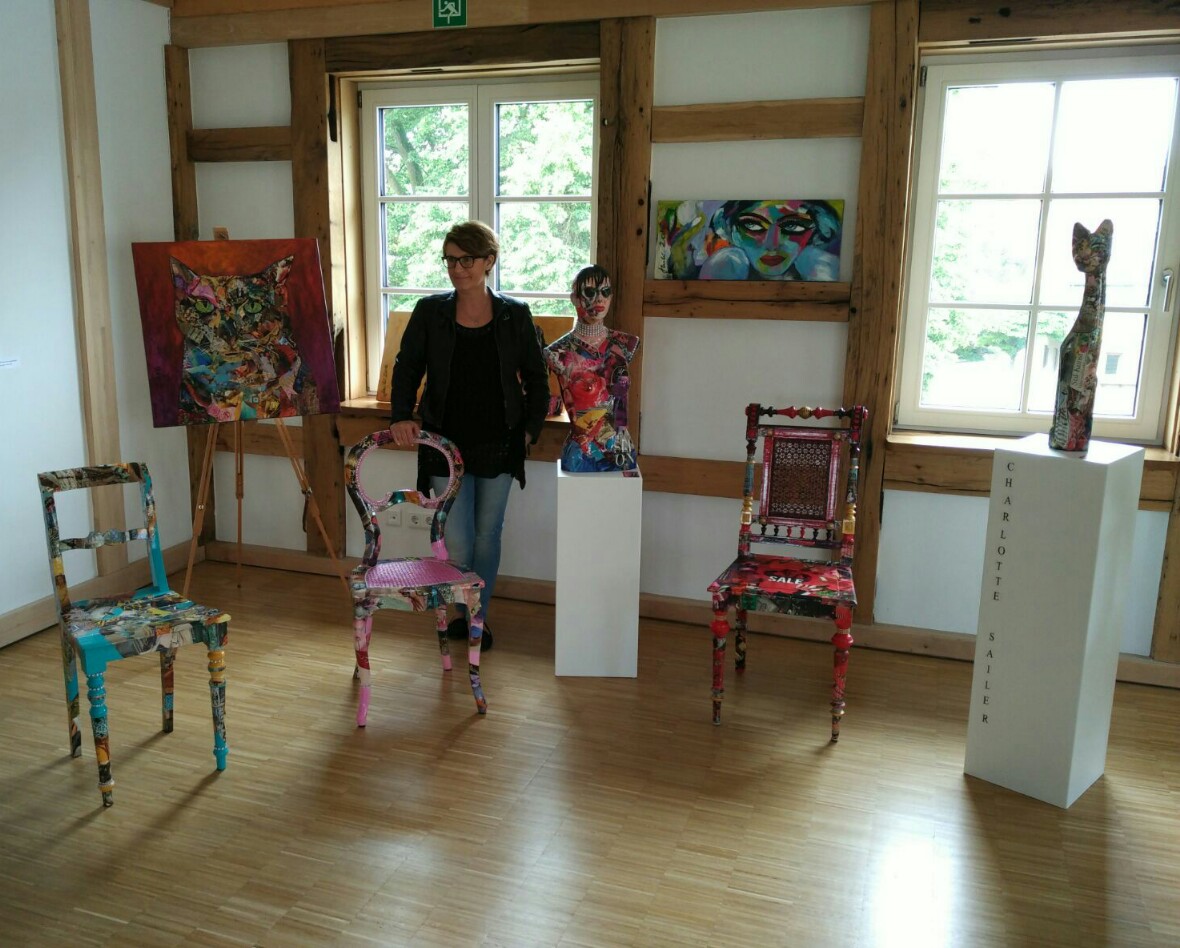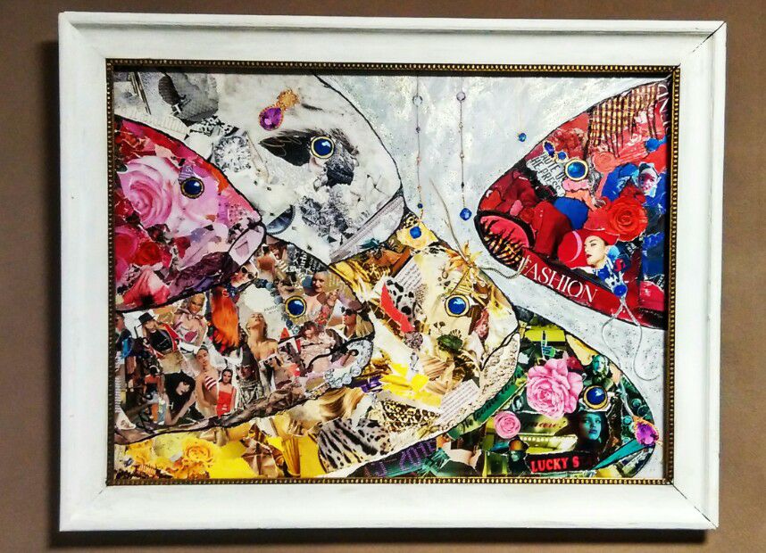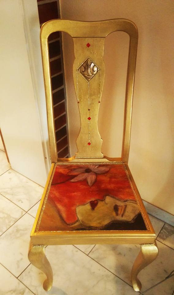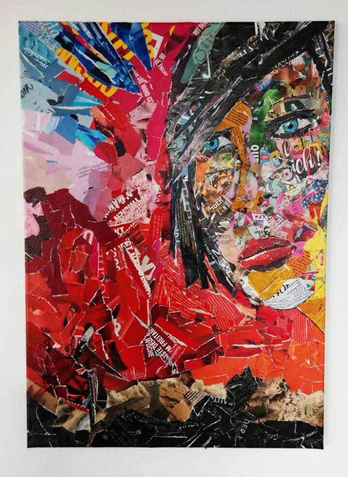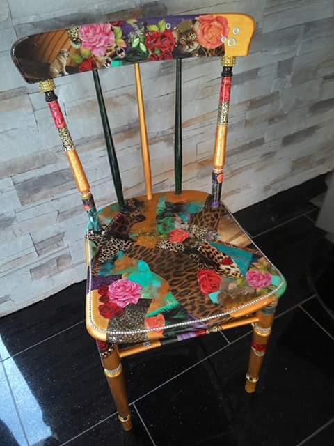 Nebenher betätigt sich Meike Kröger auch künstlerisch, wie in den beiden folgenden Bilder zu sehen ist. “ Ich drucke diese Siebdruckmuster selbst und verarbeite sie“: