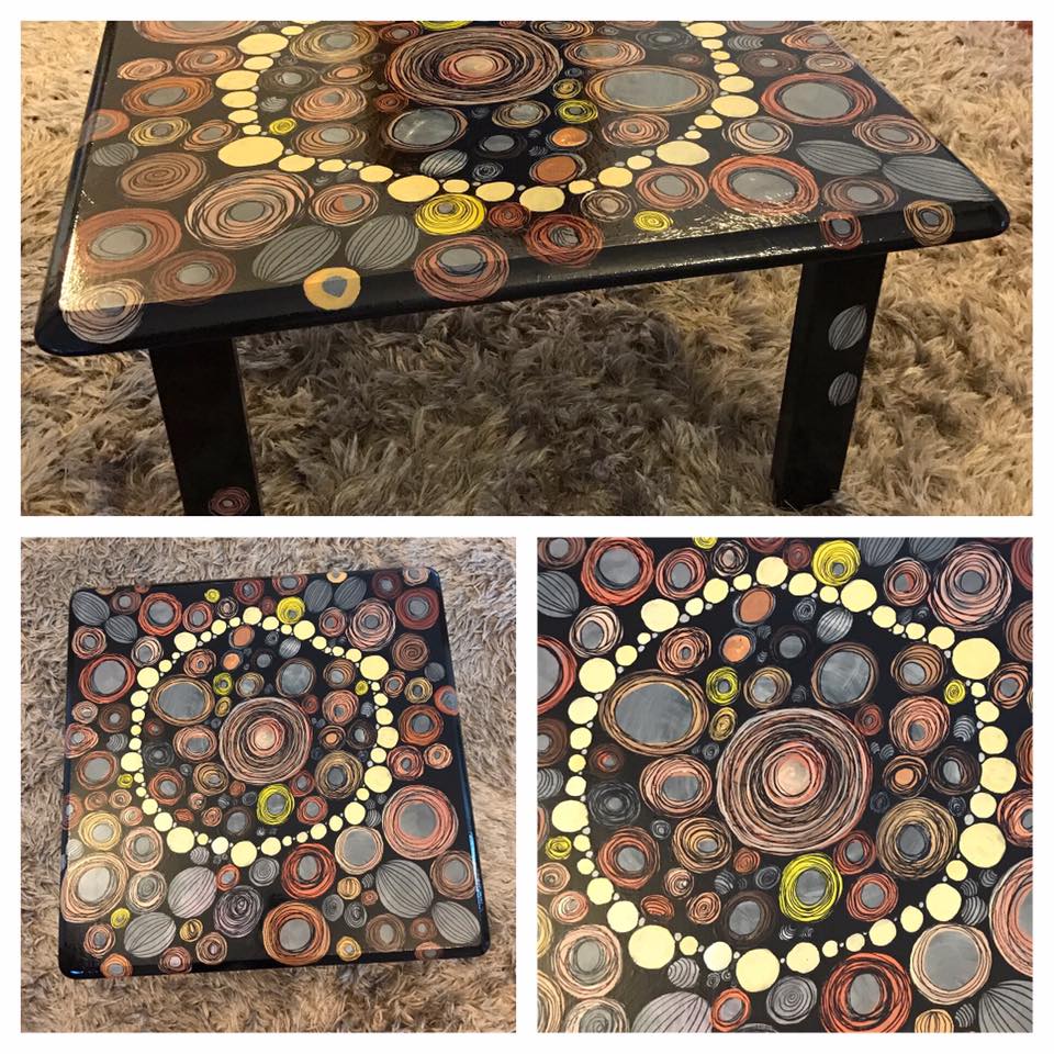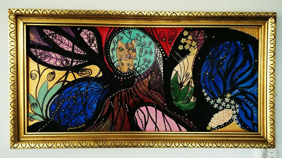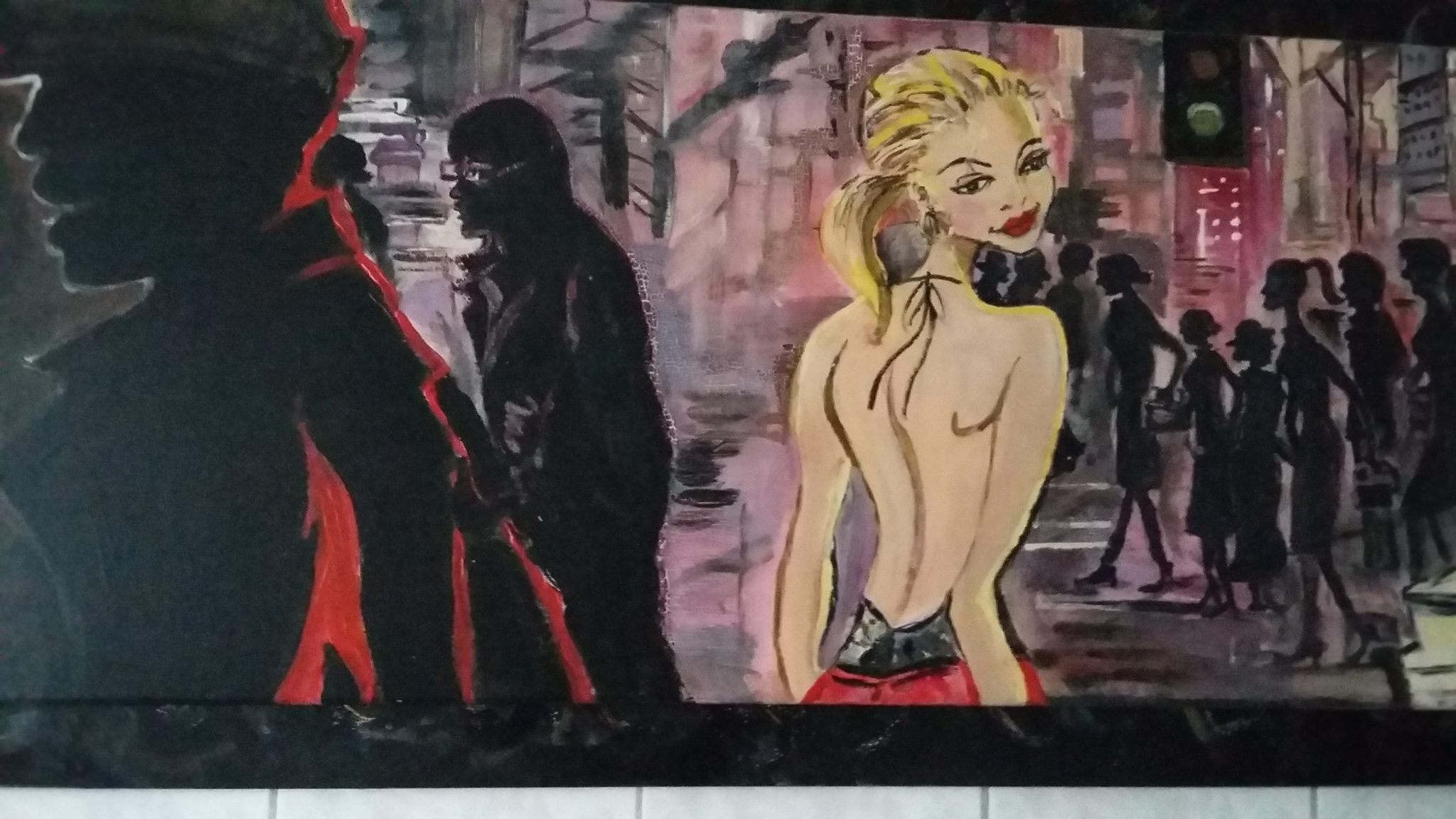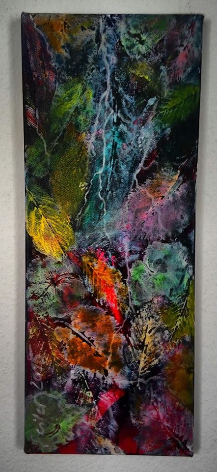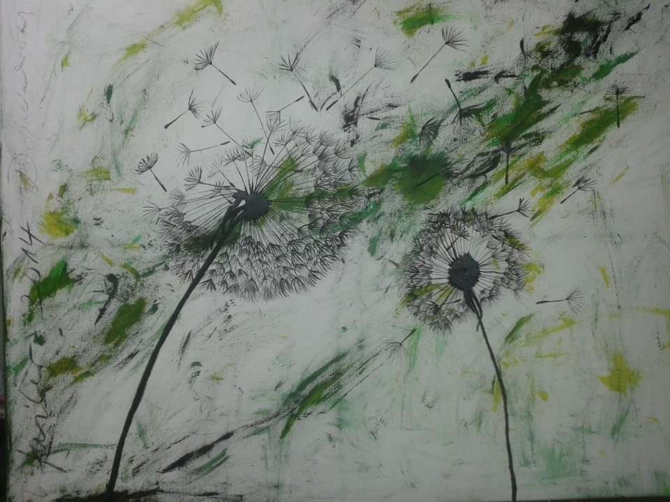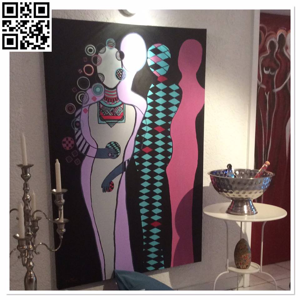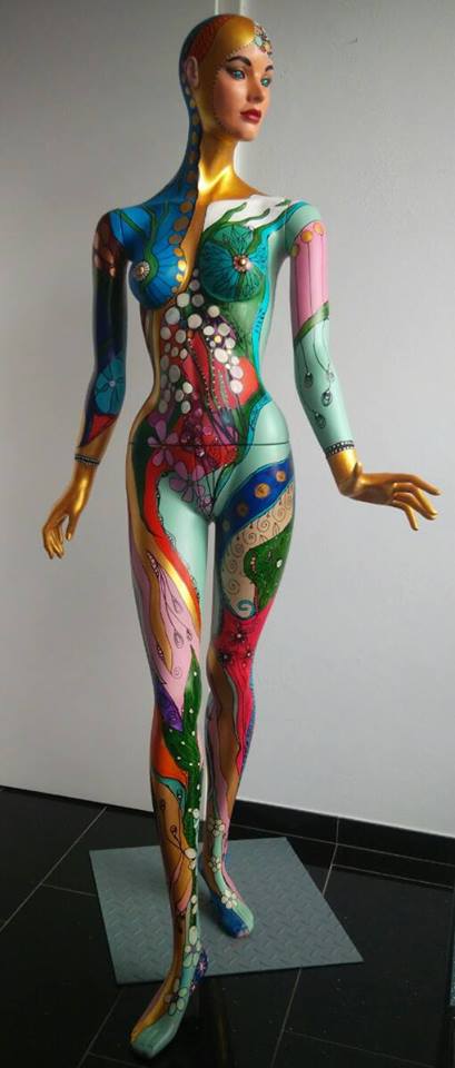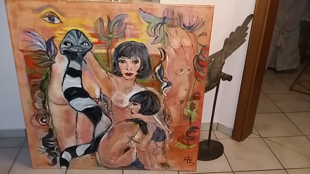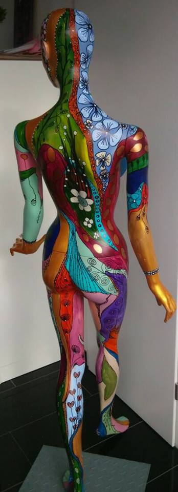 Nebenher betätigt sich Meike Kröger auch künstlerisch, wie in den beiden folgenden Bilder zu sehen ist. “ Ich drucke diese Siebdruckmuster selbst und verarbeite sie“: