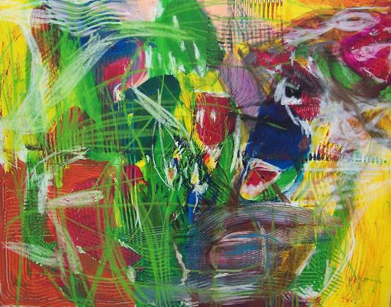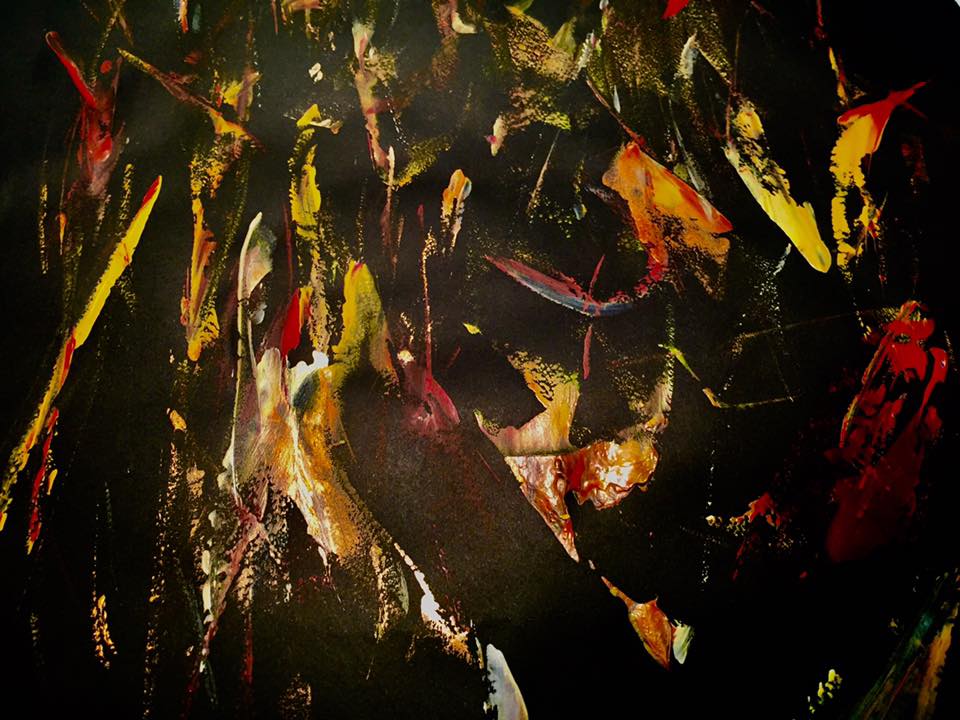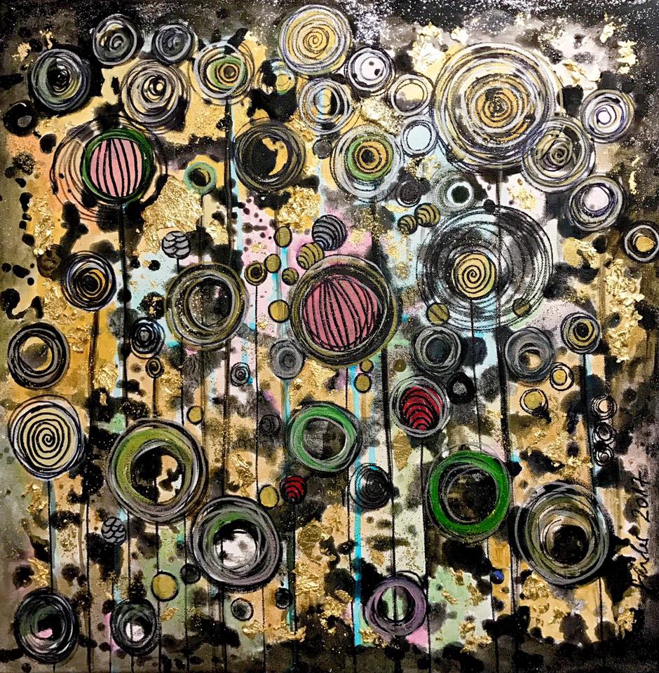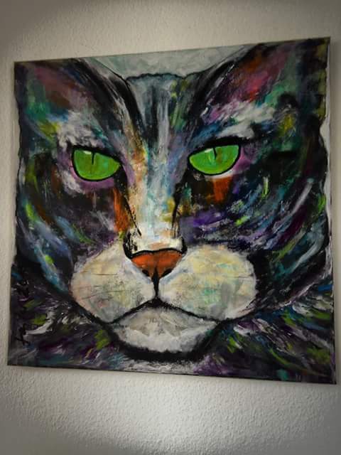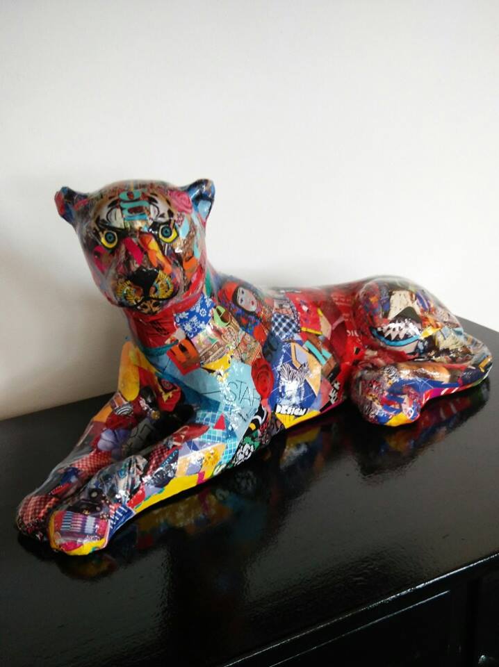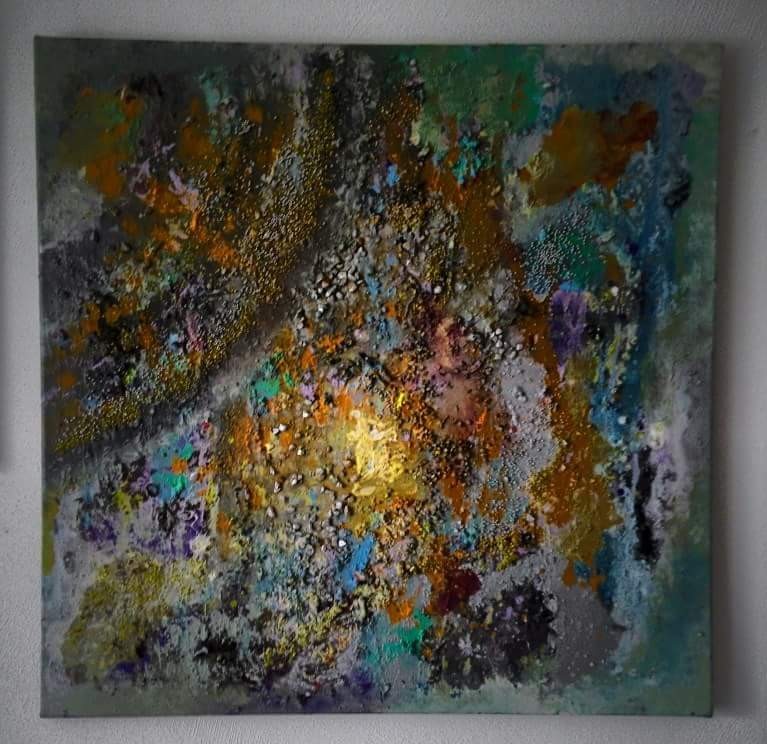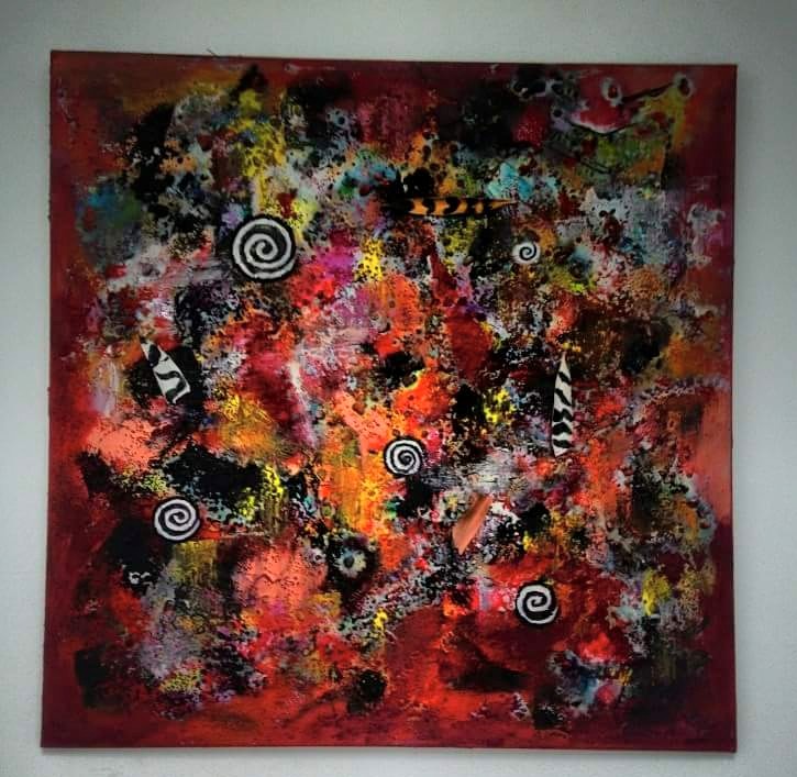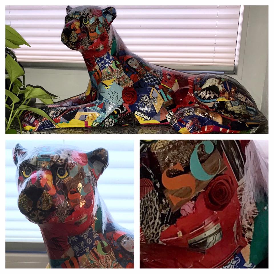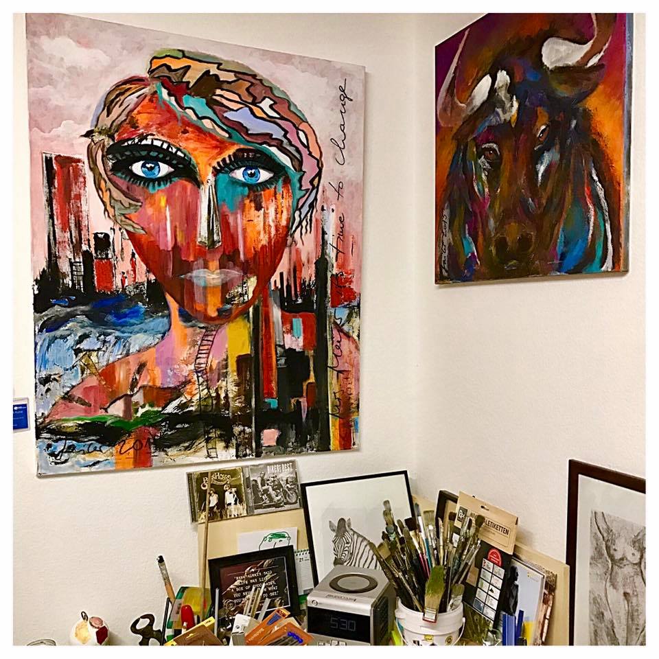 Nebenher betätigt sich Meike Kröger auch künstlerisch, wie in den beiden folgenden Bilder zu sehen ist. “ Ich drucke diese Siebdruckmuster selbst und verarbeite sie“: